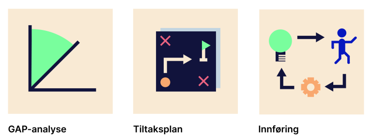 I dialog med kunden utarbeider vi tiltaksplanen som viser hva og hvordan virksomheten må arbeide videre for å kunne etterleve NIS2.